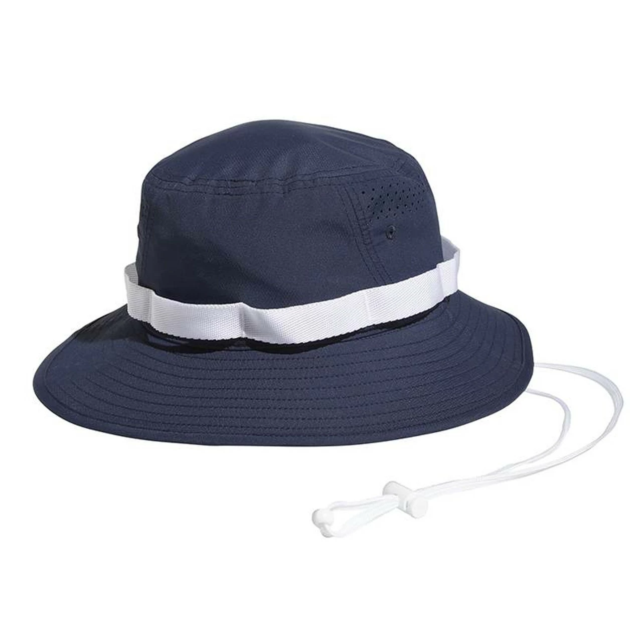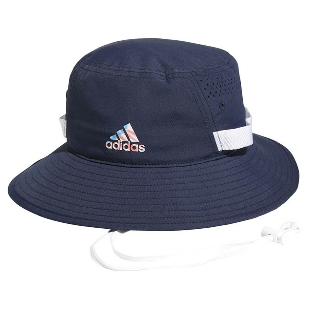 The adidas Victory Bucket Hat in Navy features a lightweight, quick-dry construction with built in mesh for ventilation. This is a really well-constructed hat with thought out details to make it functional and full featured. UPF 50 sun protection will guard against the sun’s most harmful rays. Moisture-wicking sweatband for dry and cool comfort. Finally, you can secure it to your head on those windy days with the adjustable drawstring.