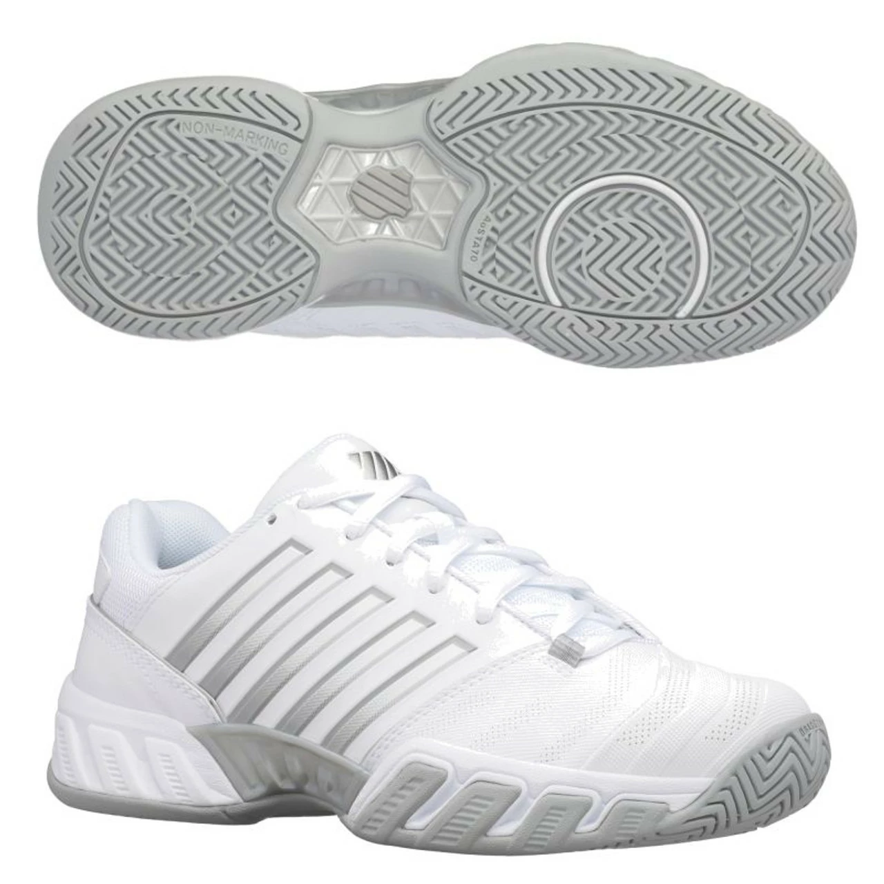 The K-Swiss Bigshot Light 4 court shoe is the latest version in the “Bigshot” line. Â This shoe combines a super stable upper with a wider forefoot and narrower heel for a custom type fit that accommodates many of our players!