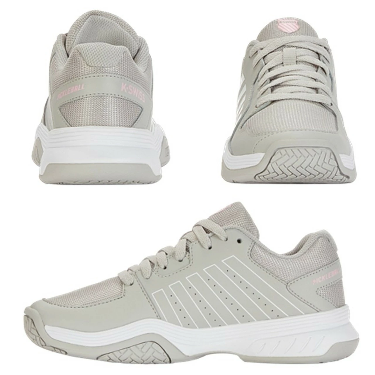 The K-Swiss Court Express Pickleball shoe for ladies is a very lightweight, breathable yet supportive pickleball sneaker for beginner through intermediate, recreational players. An easy-fitting style, especially if this is your first pickleball sneaker.Â