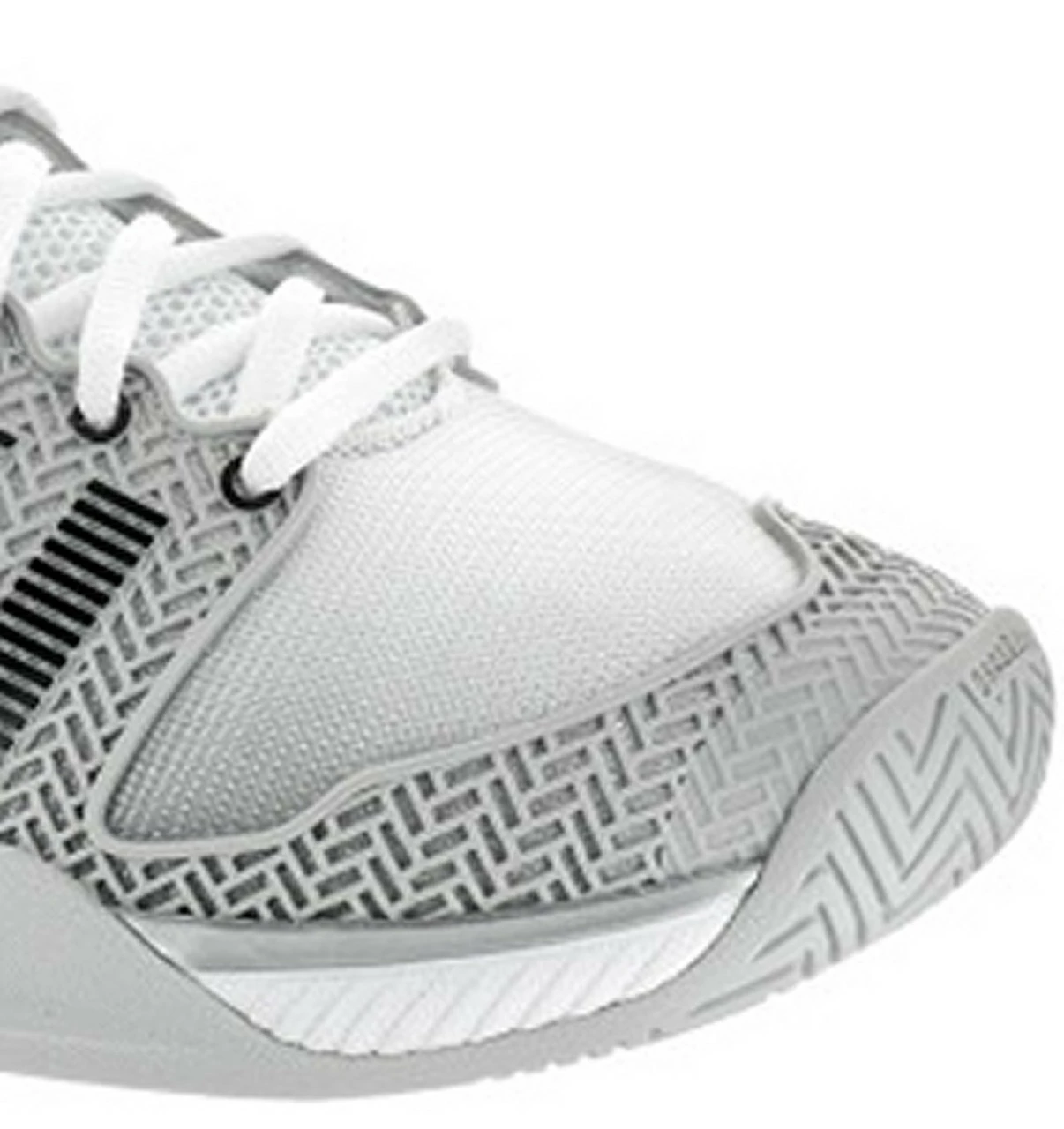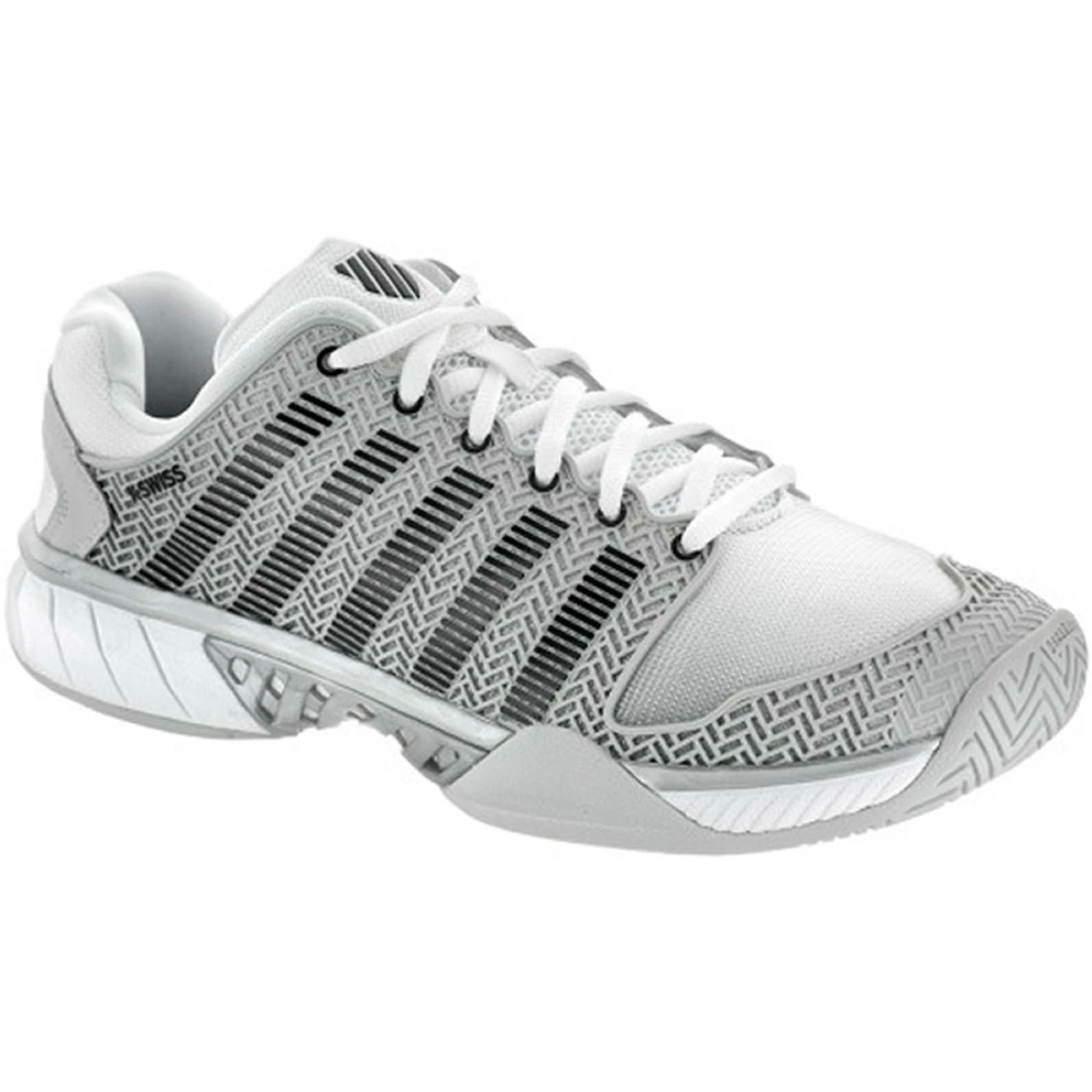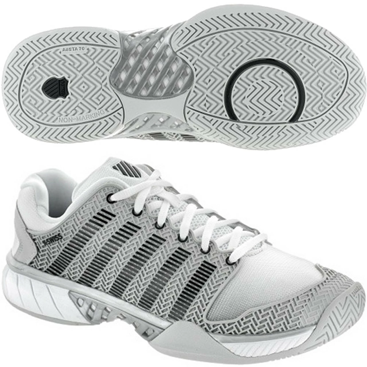 The K-Swiss Hypercourt Express (Original Version!) court shoe is the lighter weight version of its leather counterpart, the Hypercourt Express LTR. A host of new technologies make this shoe comfortable and light weight to get you to the ball quicker while it isstill a standout for stability and traction on all court surfaces. Â Customer’s appreciate the relatively generous width of this shoe for added comfort in the forefoot area. DISCONTINUED STYLE.