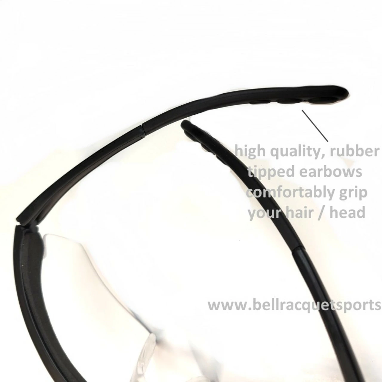 The sleek, slightly curved earbows fit snugly against the head with just the right amount of pressure to stay in place during play.