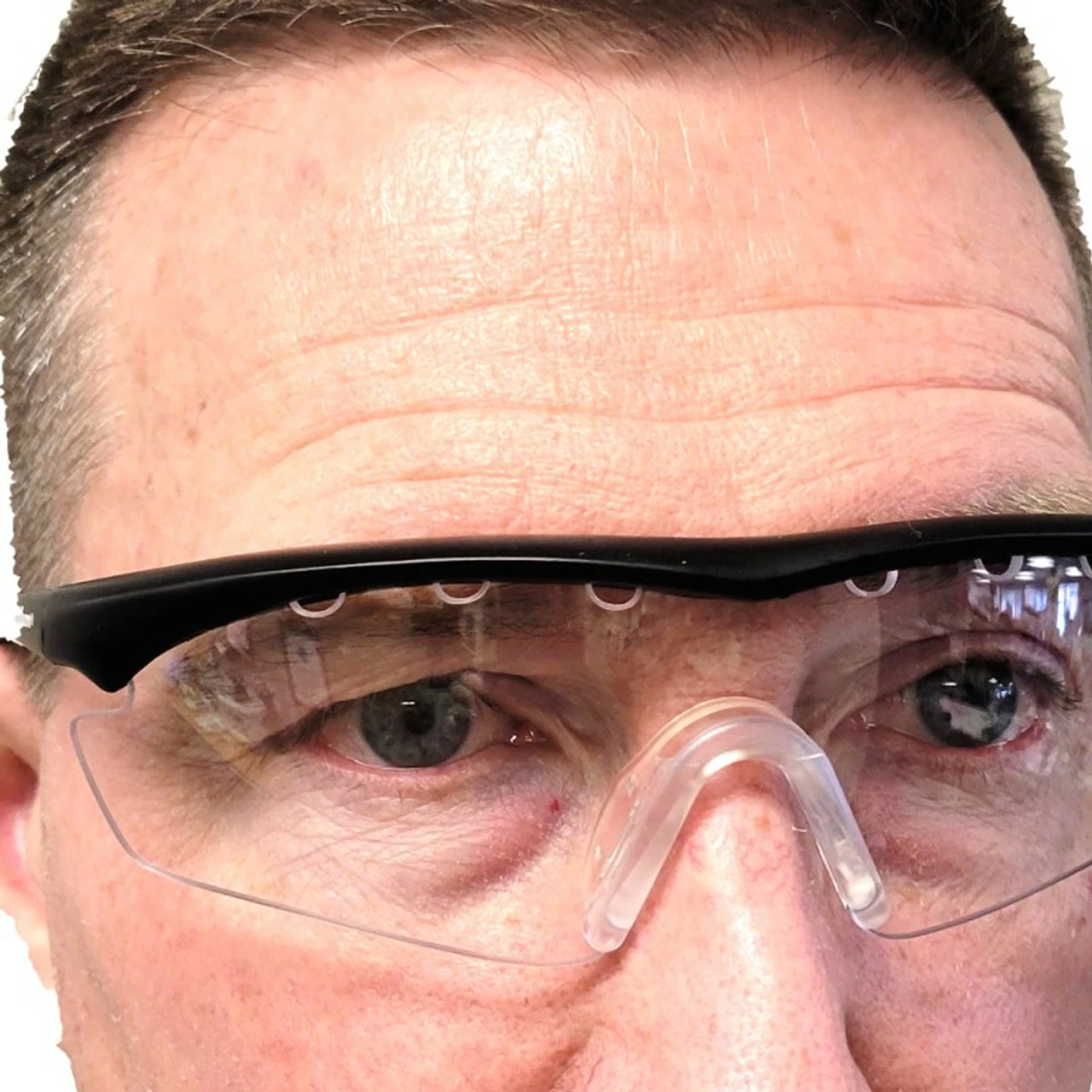 2) The shield style and molded nose piece results in fit that sits further away from your face than many other styles with smaller, curved lenses, allowing air to flow across the inside, top and bottom of this eyeguard, even when it is seated properly on you.