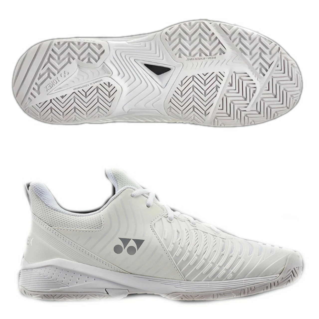 The Yonex Power Cushion Sonicage 3 is a a lightweight option in a durable court shoe that is designed for support with comfort. Yonex redesigned the upper to offer more support than the previous version, while maintaining a lightweight, no-rub feel.